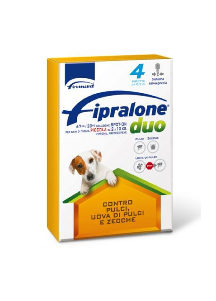 Soluzione spot-on per cani di taglia piccola a base di Fipronil e Piriproxifene.